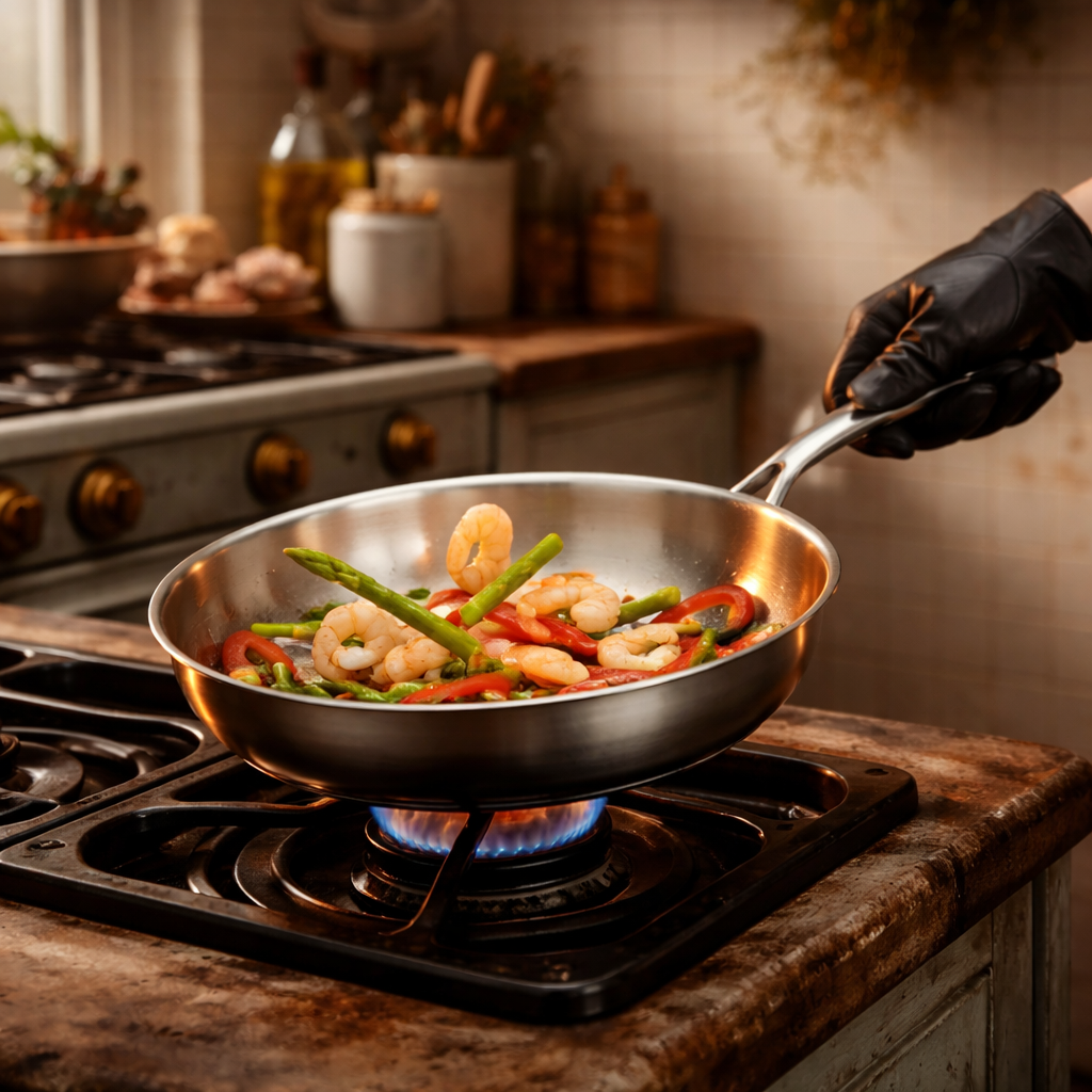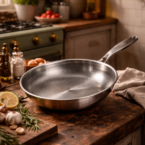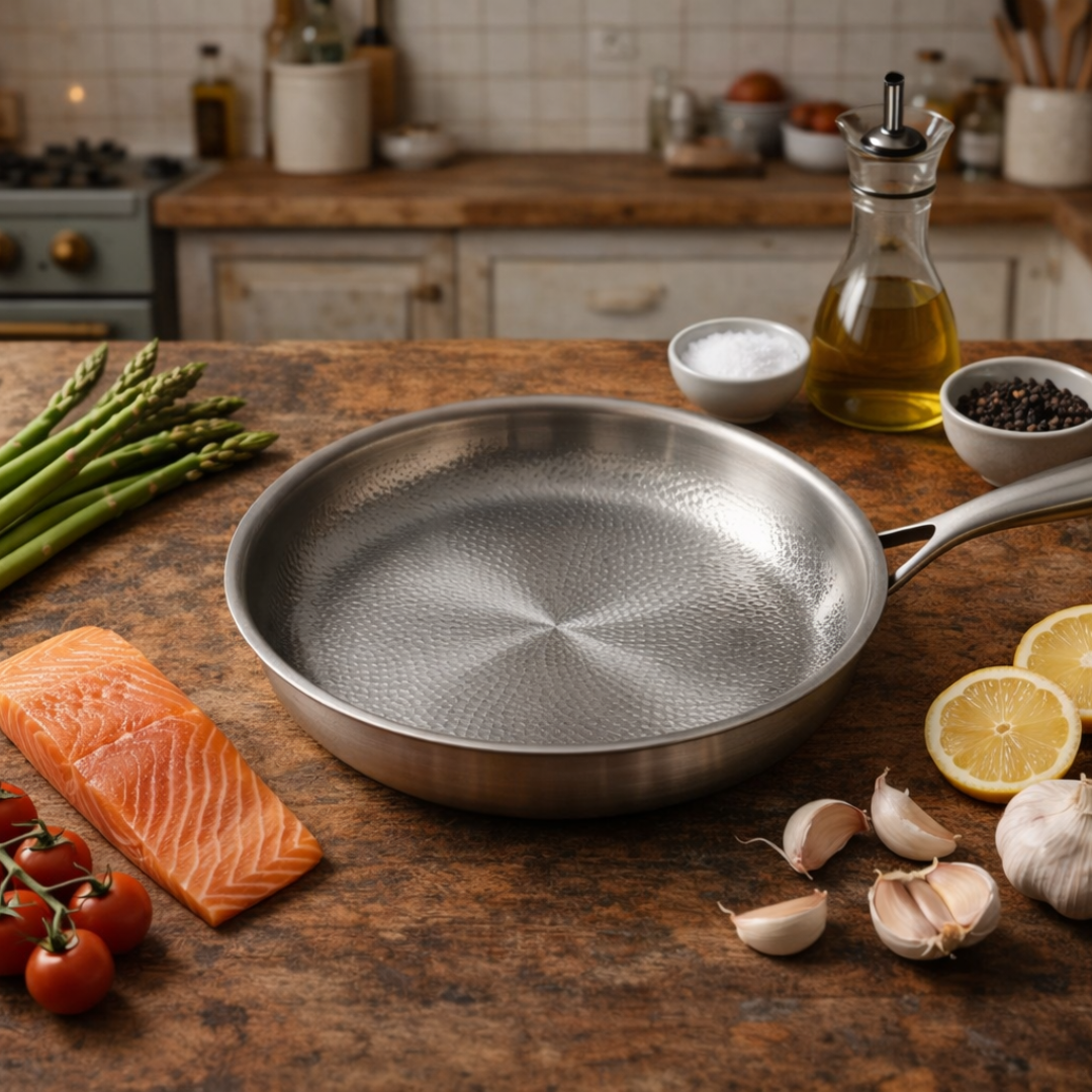 Med en beläggningsfri titaniumstekpanna får du en stabil, slitstark yta som klarar hög värme och daglig användning.